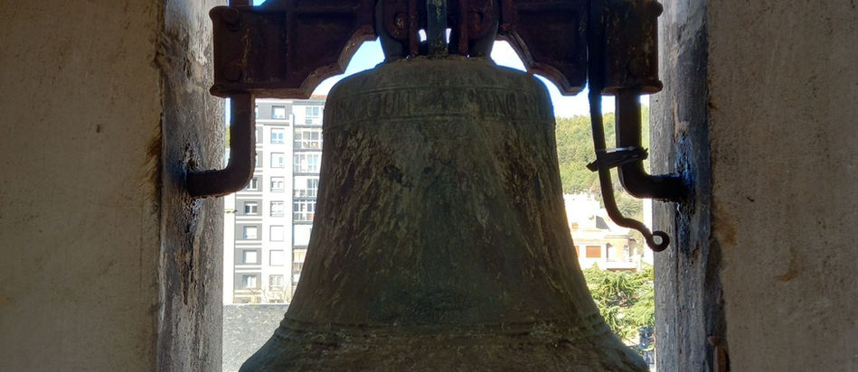 DESCRIPCIÓN: Campana esquilonada de fabricación industrial. Tanto el Yugo como la campana están fabricados por la misma empresa en el mismo año de construcción de la parroquia, formando un conjunto coetáneo (Parroquia y campanas) muy interesante.