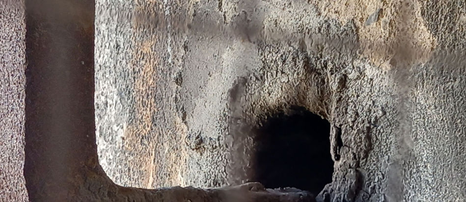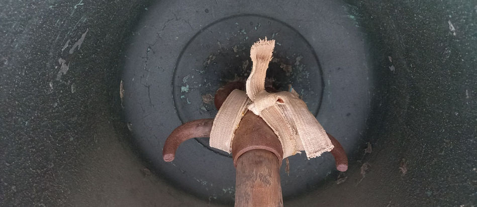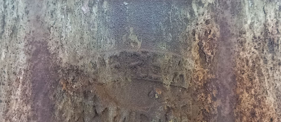 La campana tiene mucha suciedad por el interior, a causa de un largo período de haber estado invertida.