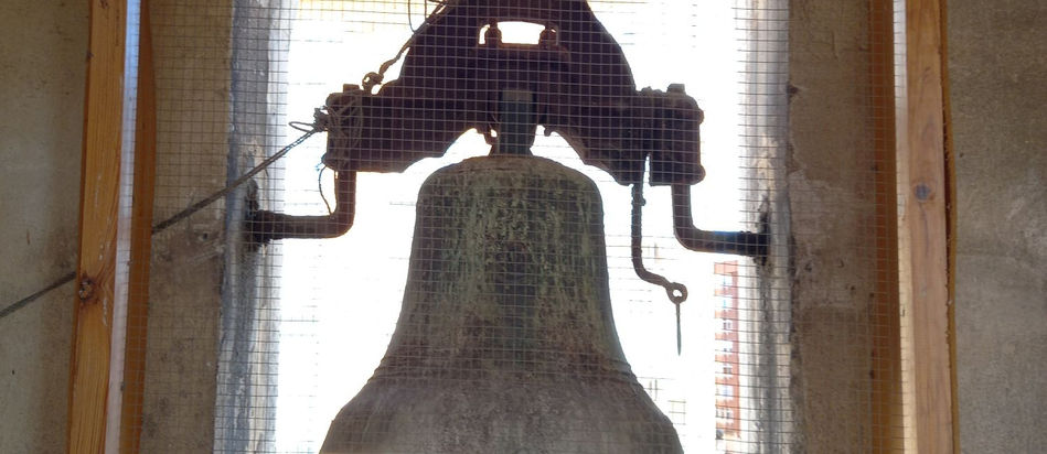 La campana está girada 180º ya que en el Medio, por la cara interior del campanario tiene un crucifijo de molde y por la cara exterior, la imagen de un cristo y bajo ella pone: “PEREA MIRANDA DE EBRO”