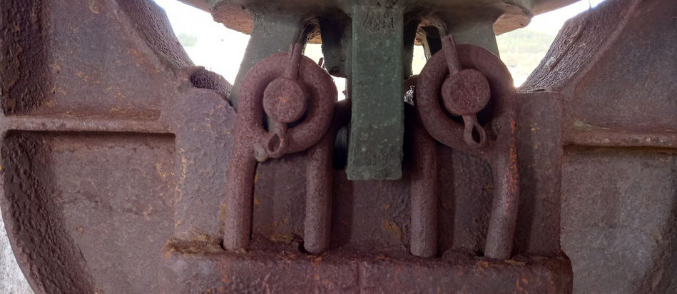 PROPUESTAS: El yugo del campanillo debería ser desmontado y restaurado en medida de lo posible para recuperar el volteo, de no ser así se sustituirá por un Yugo y Melena de madera de estilo, medidas, proporciones y relación de contrapeso al de los que hay en La Rioja alta para mantener la estética y estilo original.