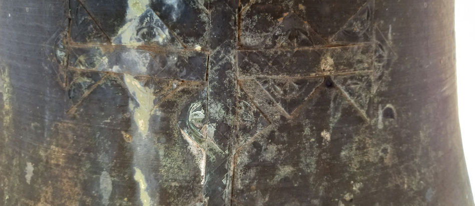 La campana tiene una rebarba excesiva, producida por un mal encaje entre los moldes en el momento de su fundición.