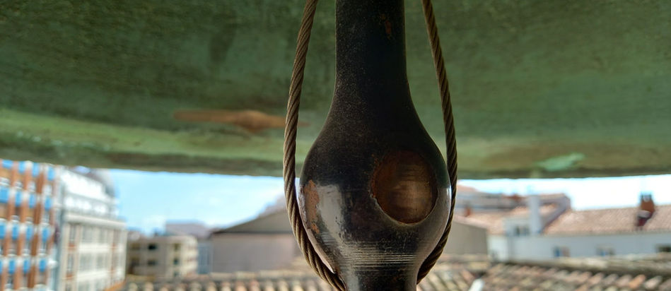 El badajo debe ser retirado y colocado en su lugar uno nuevo con caña de madera y cola en forma de ancla que permita el repique manual.