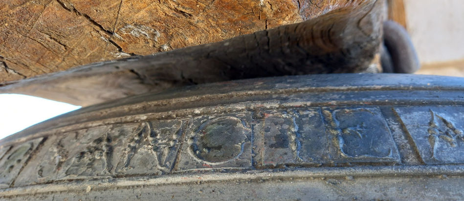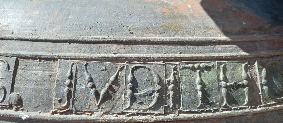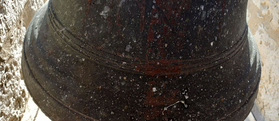 DESCRIPCIÓN: Campana romana de grandes dimensiones con un Yugo de madera antiguo. La campana posee dos inscripciones localizadas en el Tercio y en el Medio.