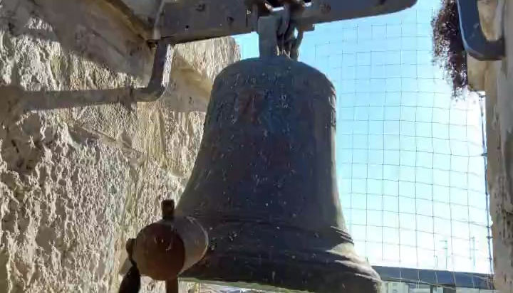 La campana carece de badajo, el cual desapareció tras la limpieza de la torre en el año 2013.