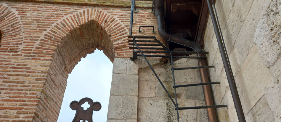 TOQUES PROPUESTOS DE CAMPANAS: Dado el difícil acceso a la espadaña, poco se puede hacer para proponer un uso continuado de las campanas, salvo volteos manuales desde el campanario en fechas muy señaladas, siempre y cuando las campanas pasasen por un proceso de restauración. No obstante existiendo en la cubierta paso para una de las cuerdas, se debería dotar de un badajo a la campana mayor para poder tocarla a distancia desde el interior del templo.