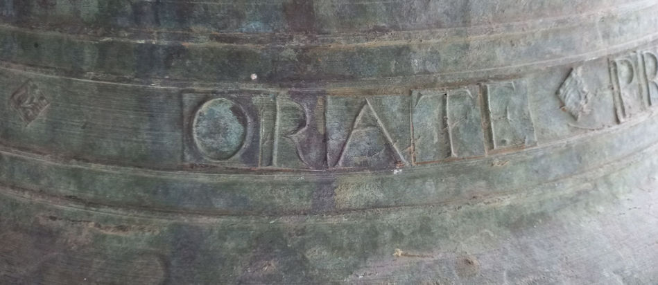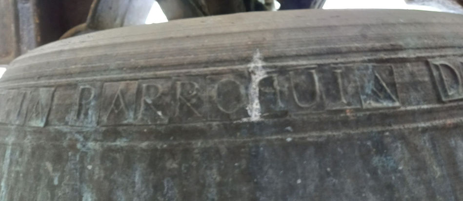 DESCRIPCIÓN: Campana de perfil esquilonado antiguo con yugo metálico. La campana posee dos inscripciones localizadas en el Tercio y Medio Pie en las que mezcla latín y castellano, además de una tercera en el Pie, incisa, escrita por el autor de la campana.