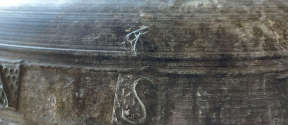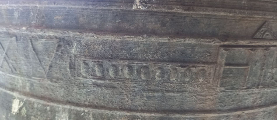 En el Pie tiene una tercera inscripción, realizada a mano alzada por el autor de la campana que dice: “Pedro de Menezo Vierna me Fecit Siendo Cura D Andres Casado”.