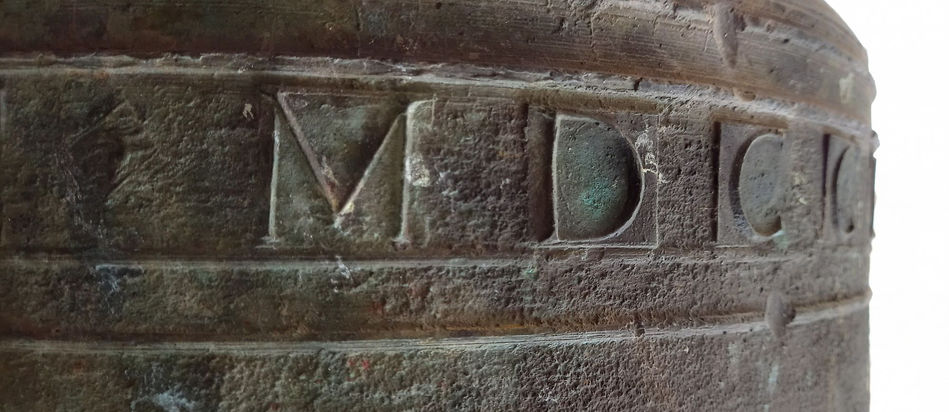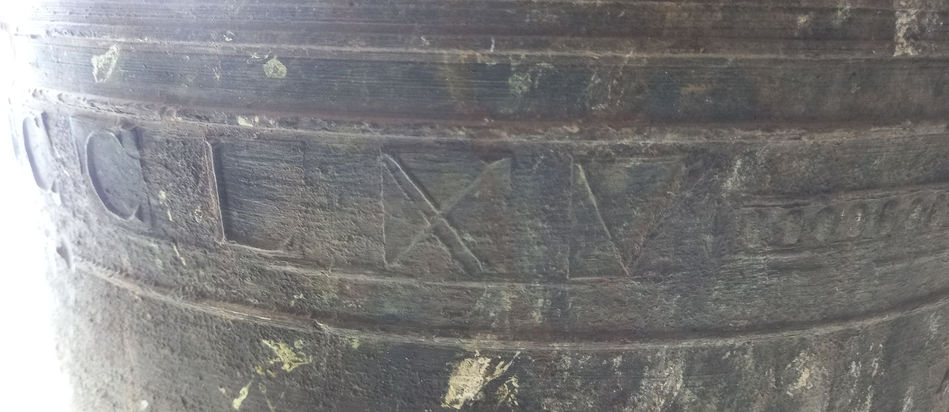 DESCRIPCIÓN: Campana romana con Yugo de fundición. Pese a no estar firmada ni se menciona quién la hizo, si nos basamos en la tipografía, corona, decoración y perfil de la campana, esta obra podría atribuirse a Los Menezo.