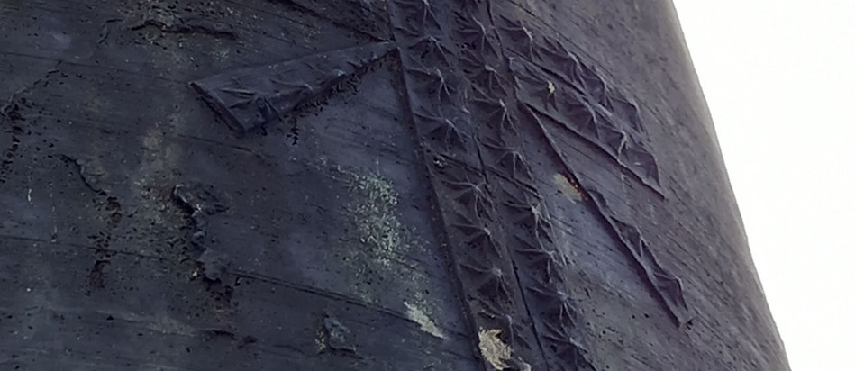 En el pie tiene marcas del martillo antiguo del reloj y otra marca de un martillo anterior orientada al Oeste.